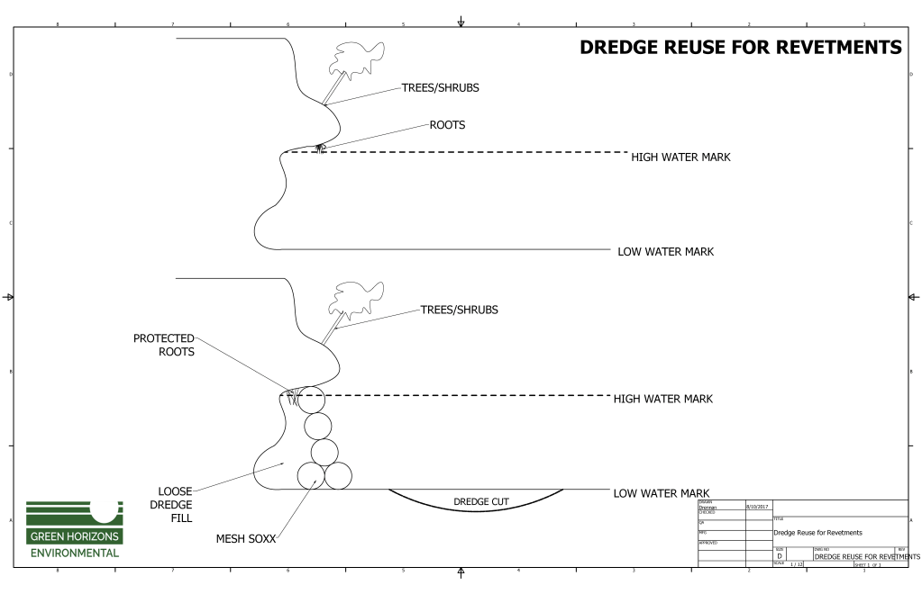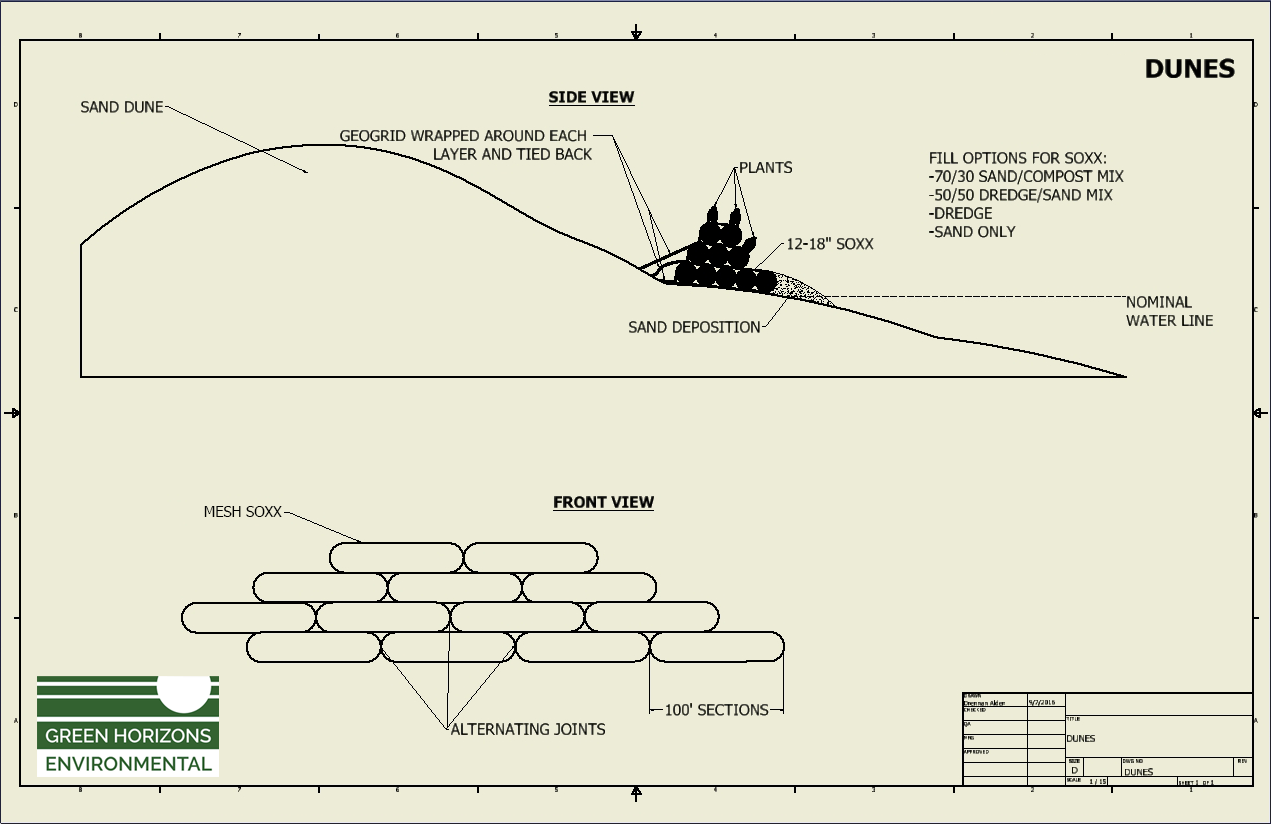 Living Shorelines are becoming more common. With the passing of recent federal regulation (American Water Infrastructure Act Oct. 10, 2018), more designs will be required along coastal areas in the US as options to traditional alternatives. Click the images below to view detailed drawings.