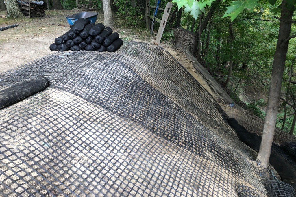 We were faced with having to secure a steeply declined creek wall at our home. If a retaining wall wasn’t installed we faced the very real possibility of our two story deck toppling over due to bank instability from erosion. Traditional masonry systems were unsightly, expensive, or both, and we wanted something which could blend into the landscape a bit nicer. We were introduced to the Green Horizons system and shown how it could obtain the same results as a block retaining wall while still being aesthetically pleasing. Plus it was nearly 1/3 the cost of installing block or concrete. This system was the perfect choice for our needs and has been amazing to see established. It has grown in thick and green, blending well into the natural landscape of a maintained lawn and natural wooded creek. We’ve seen absolutely zero new slippage of the slope or the installed Green Horizons system through several record rainfalls, and are no longer concerned about losing our property to water runoff and erosion.